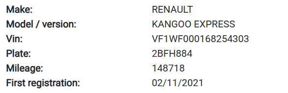 Registration Number: 2BFH884
